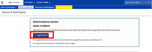 Välj ”Administrera beslut” och sedan ”lägg till beslut”