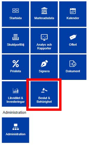 Gå in i menyn och välj applikationen Beslut & Behörighet.