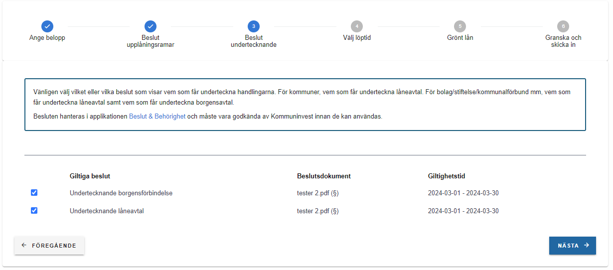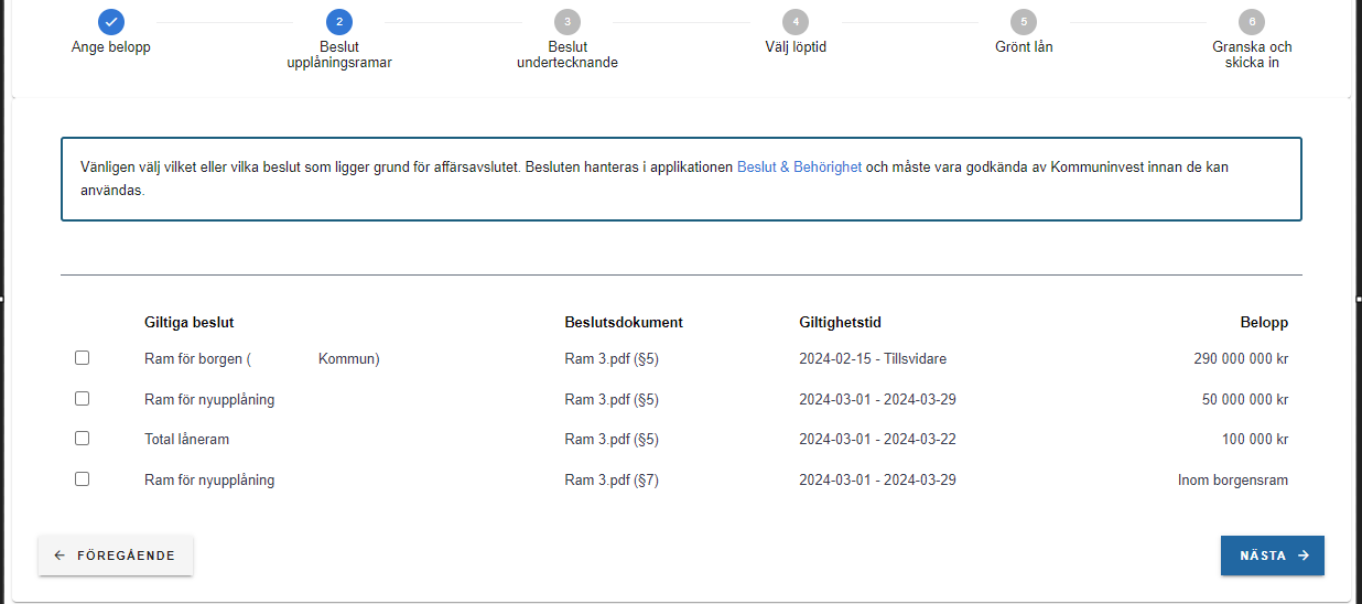I detta steg ska ni ange vilka beslut som stödjer er upplåning.